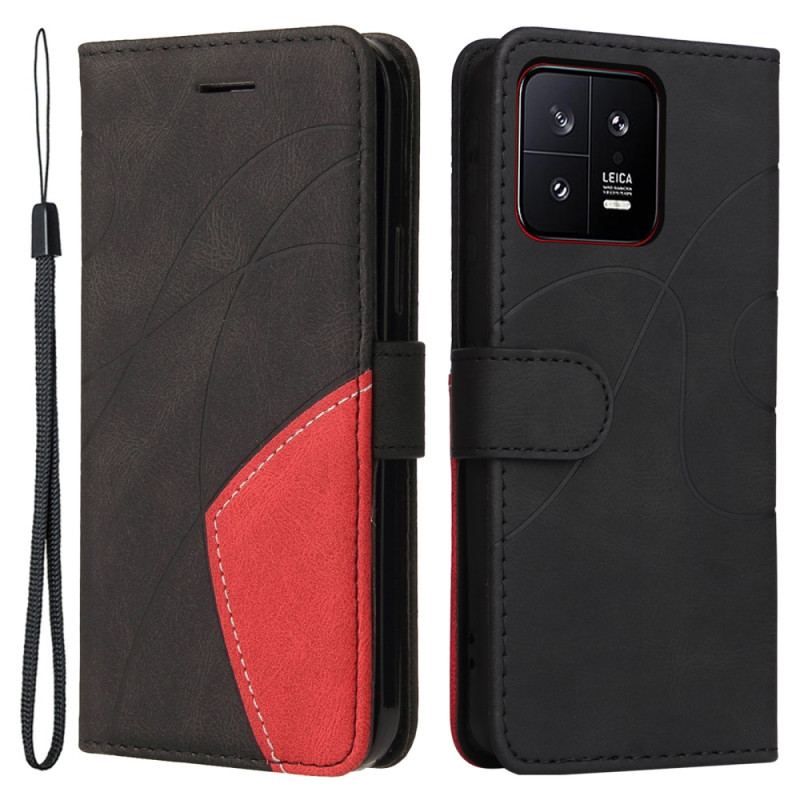 Flip Cover Xiaomi 13 Med Snor Tofarvet Rem