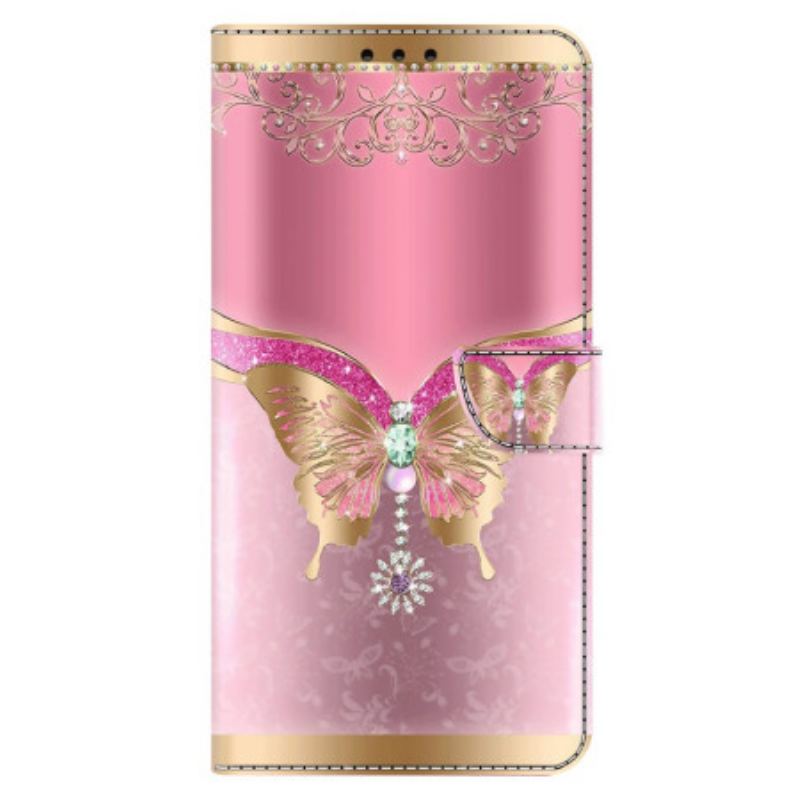 Flip Cover Xiaomi 14 Guld-pink Sommerfugl