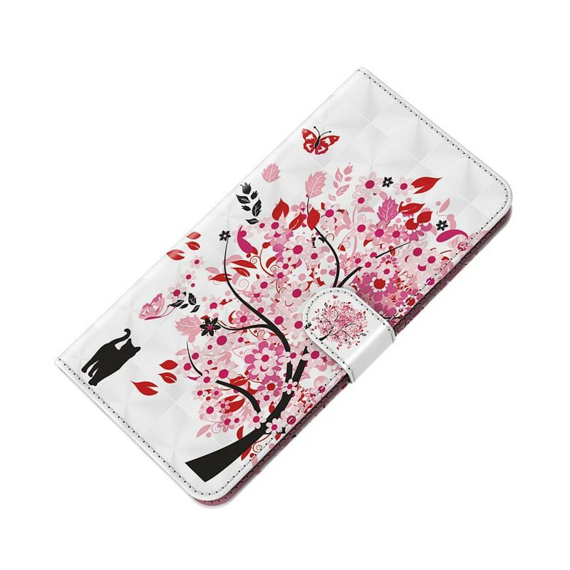 Pink Tree-Coveret Med Sin Smukke Kat Sikrer Perfekt Xiaomi Mi 10T Lite 5G / Redmi Note 9 Pro 5G, Mens Det Fungerer Som Pungtilbehør.