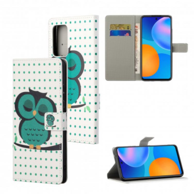 Flip Cover Xiaomi Redmi 10 Med Snor Sovende Ugle Med Rem