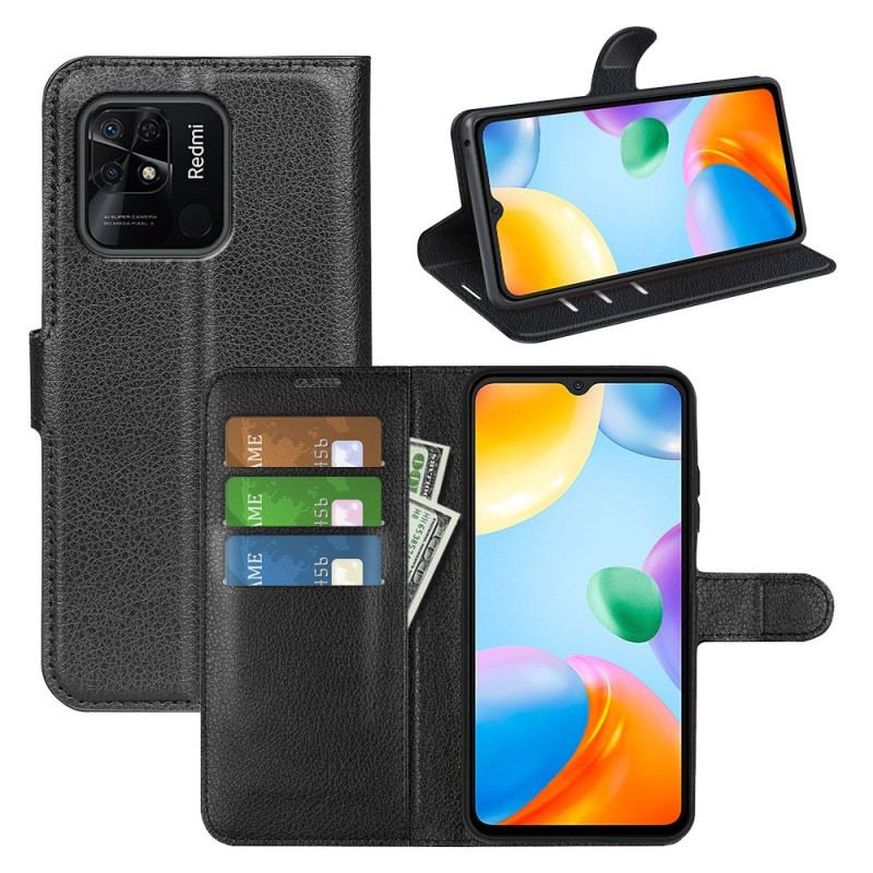 Classic Litchi Leather Effect-Coveret Beskytter Hele Xiaomi Redmi 10C Og Fungerer Som Tilbehør Takket Være Dens Pungfunktioner.