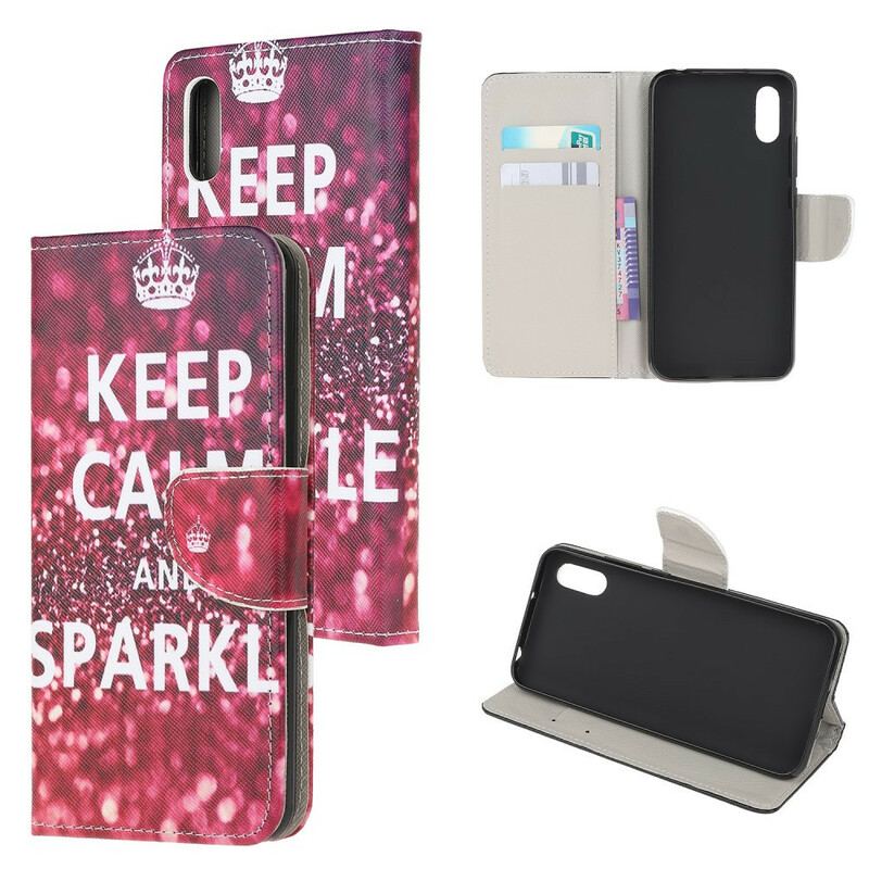 Et Farverigt Cover Til Xiaomi Redmi 9A Med Sloganet Keep Calm Omdirigeret Og Drysset Med Farver.