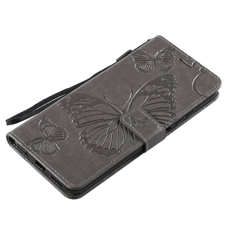 Den Giant Butterflies Imiteret Lædercover Kommer Med En Praktisk Rem Til At Bære Xiaomi Redmi Note 10 5G / Poco M3 Pro 5G.