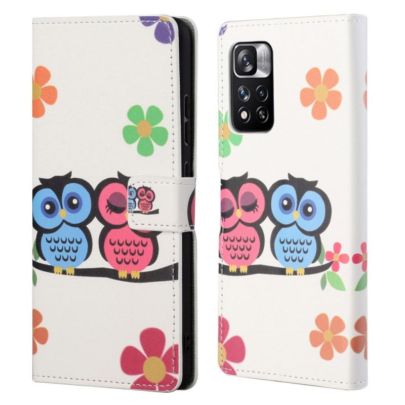 Et Legende Og Farverigt Cover, Der Repræsenterer En Familie Af Ugler Til Din Xiaomi Redmi Note 11 Pro / Note 11 Pro 5G.