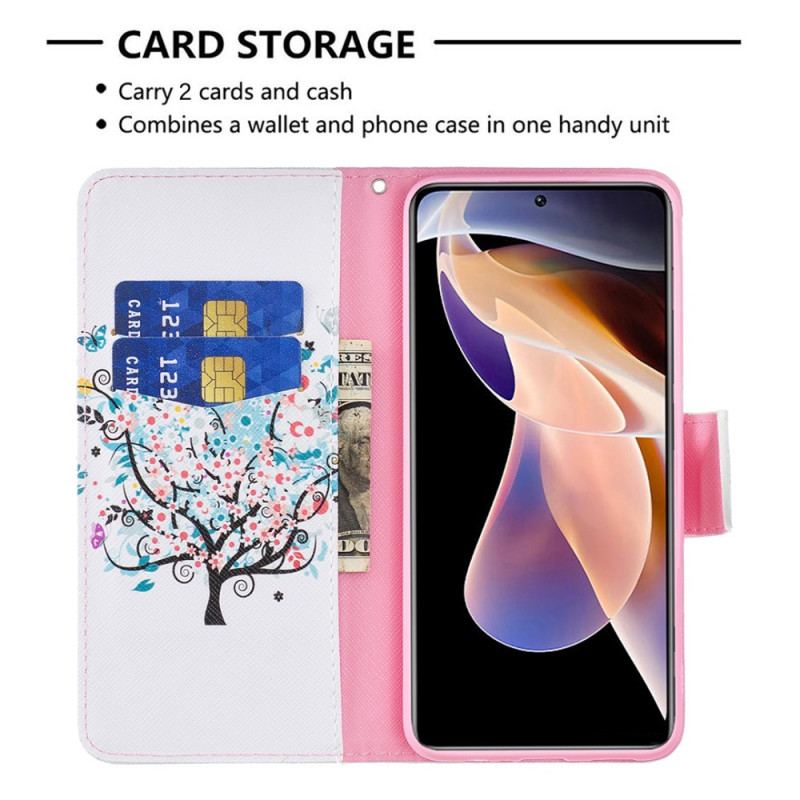 Flowered Tree-Coveret, I Imiteret Læder, Beskytter Xiaomi Redmi Note 11 Pro Plus 5G 5G Og Tilbyder Praktiske Ekstra Muligheder.