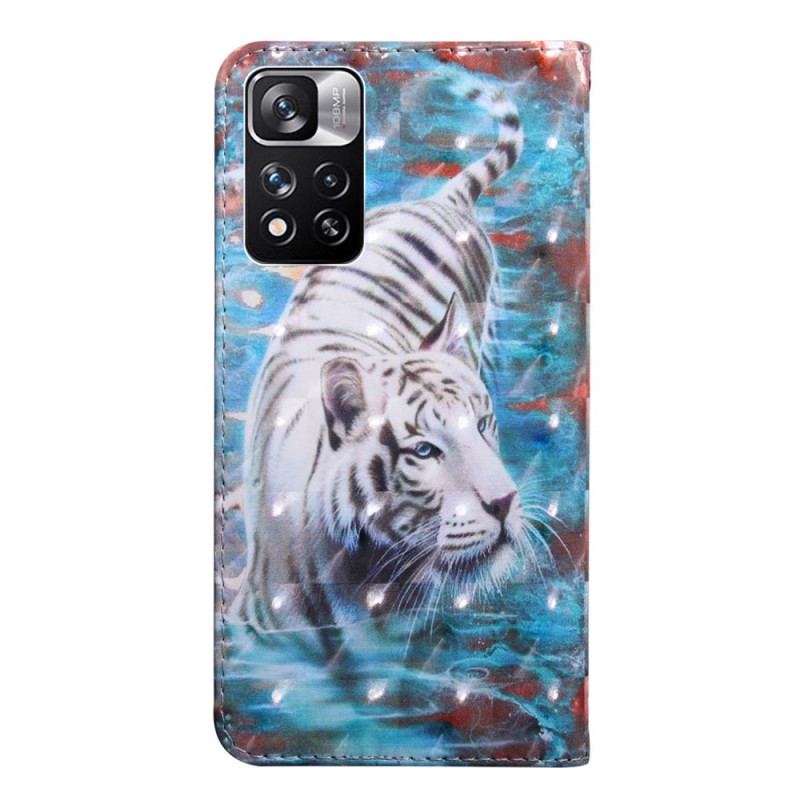 Din Xiaomi Redmi Note 11 Pro Plus 5G Er Vild Og Meget Godt Beskyttet Med Dette Tiger In The Water-Cover, Der Fungerer Som En Pung Og Kommer Med En Snor.