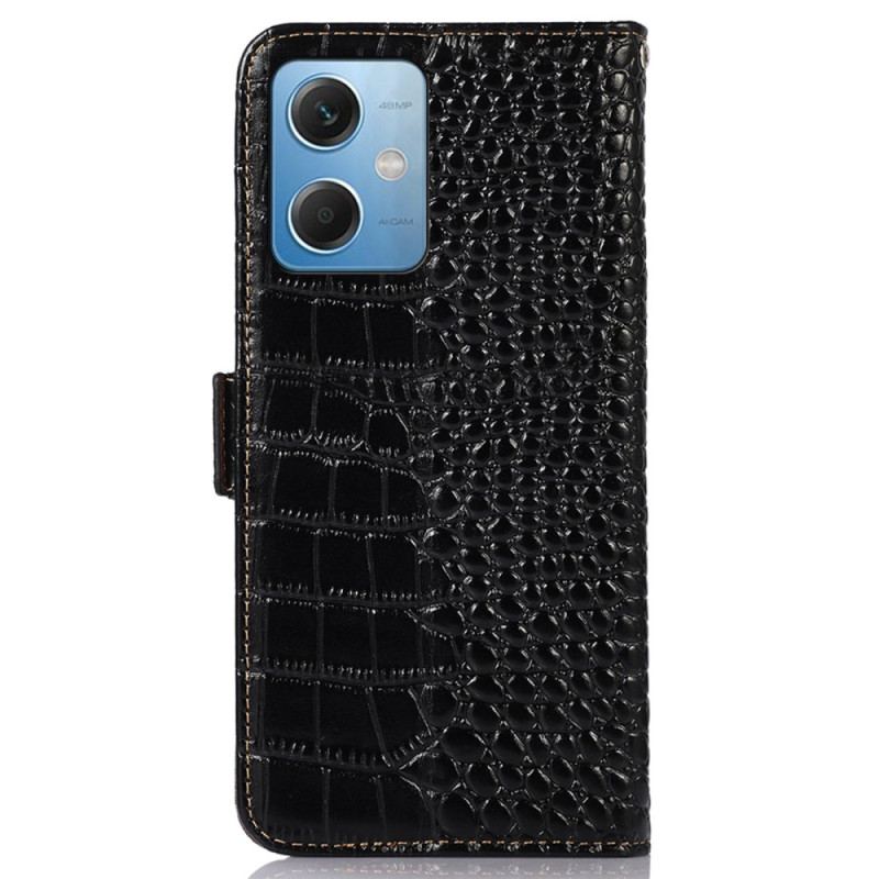 Din Xiaomi Redmi Note 12/Poco X5 5G Og Dine Kort Er Meget Godt Beskyttet Med Dette Lædercover (Krokodilletekstur) Udstyret Med Rfid-Funktionen.