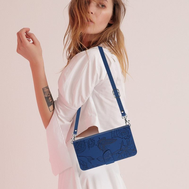 Sommerfugle-Coveret I Imiteret Læder Kommer Med En Justerbar Skulderrem Til At Bære Xiaomi Redmi Note 12/Poco X5 5G.