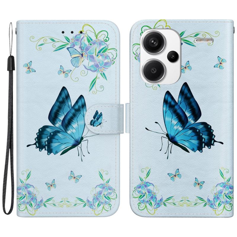 Flip Cover Xiaomi Redmi Note 13 Pro Plus 5g Blå Sommerfugl Og Blomster