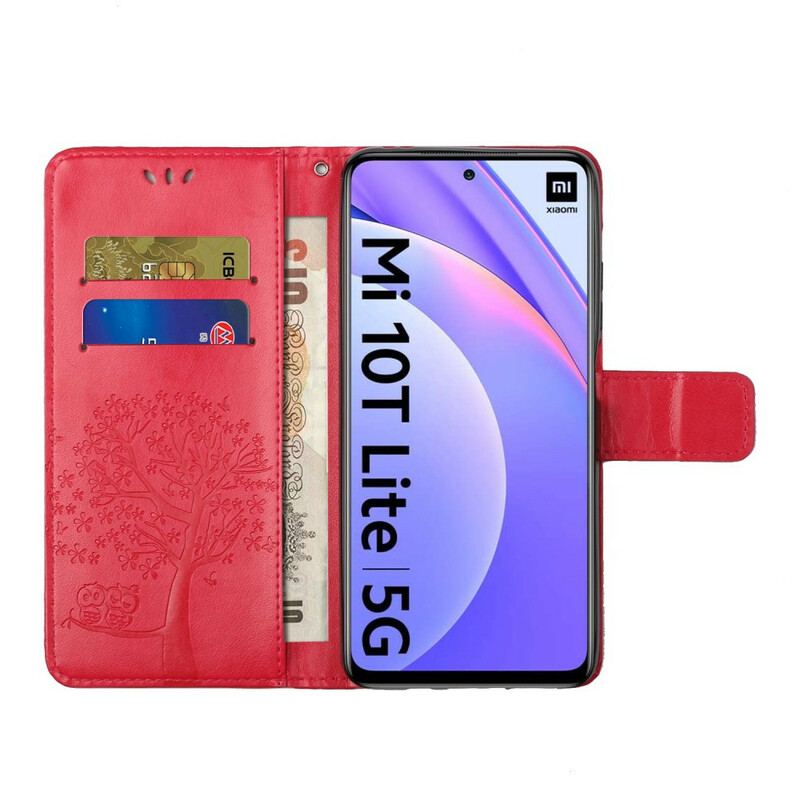 Flip Cover Xiaomi Redmi Note 9 Pro 5G Med Snor Thong Træ Og Ugler