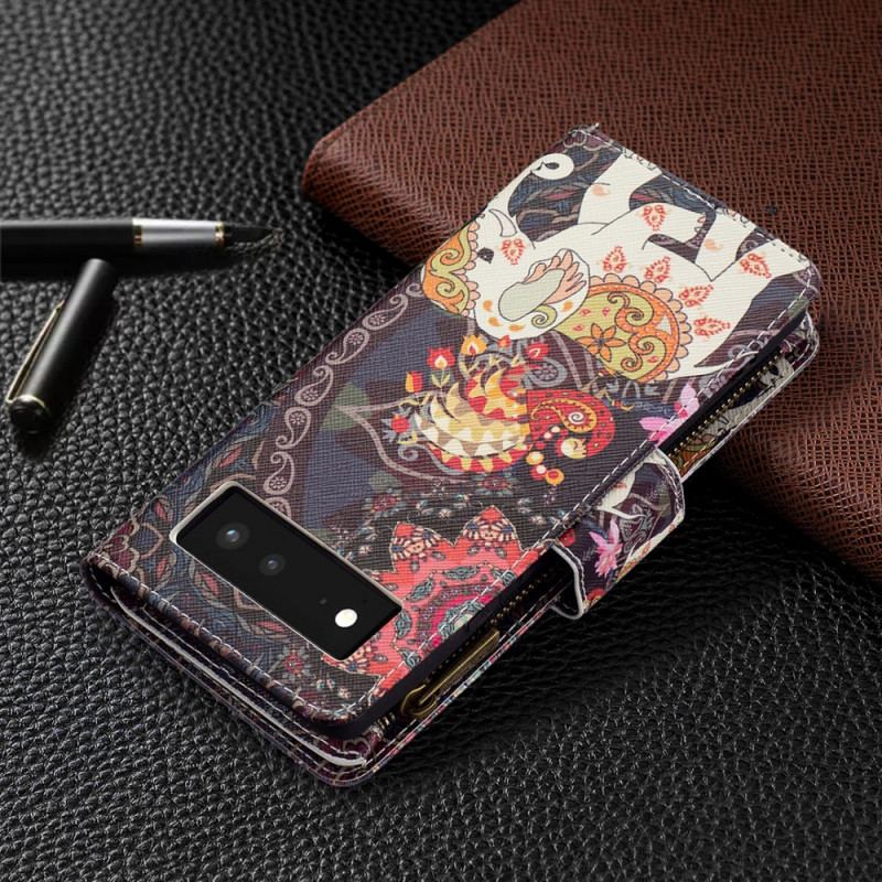 Læder Cover Google Pixel 6 Elefant Lynlåslomme