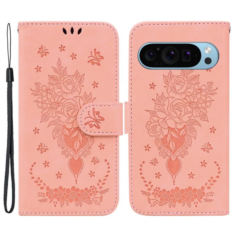 Læder Cover Google Pixel 9 Telefon Etui Blomstret Ruskindseffekt