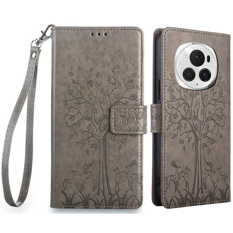 Læder Cover Honor Magic 6 Pro Telefon Etui Hjorte- Og Træmønster