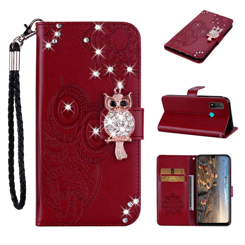 Læder Cover Huawei P Smart 2020 Ugle Mandala Og Charm