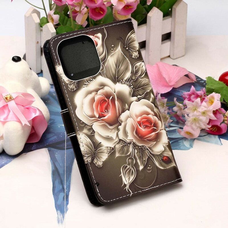 Læder Cover iPhone 13 Pro Gyldne Roser