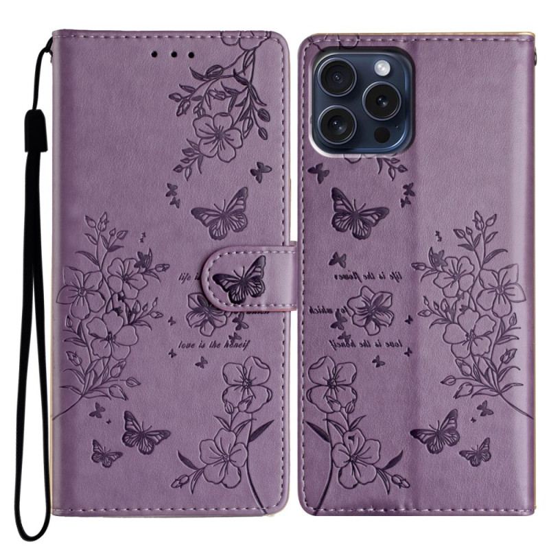Læder Cover iPhone 16 Pro Max Telefon Etui Blomster Og Sommerfugle