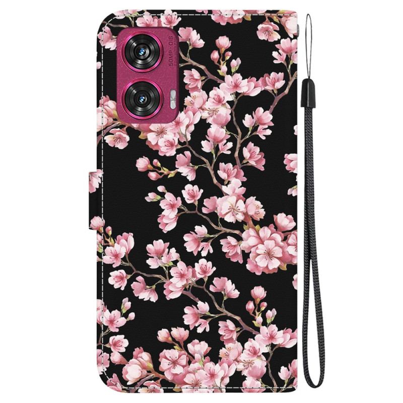 Læder Cover Motorola Edge 50 Fusion Telefon Etui Omspændte Blommeblomster