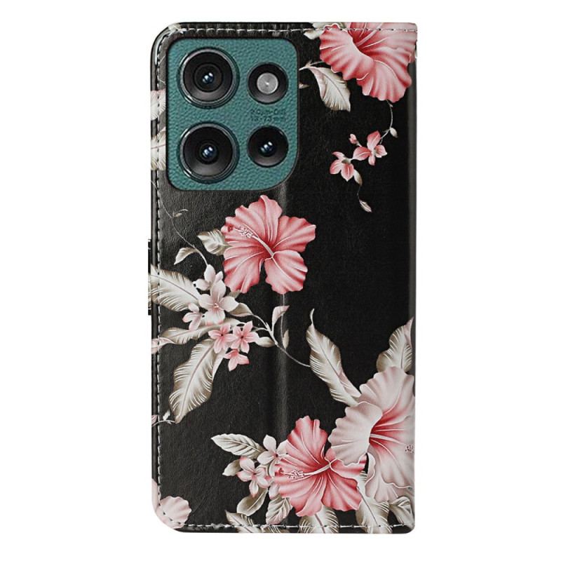 Læder Cover Motorola Edge 50 Telefon Etui Rhododendron