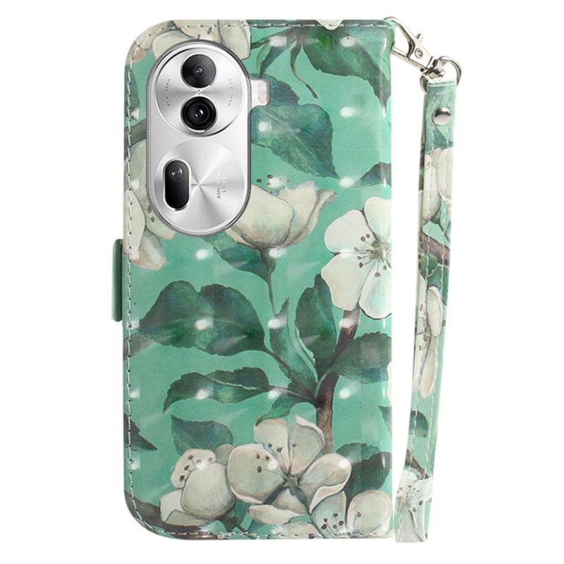 Læder Cover Oppo Reno 11 Pro 5g Akvarelblomster Med Rem