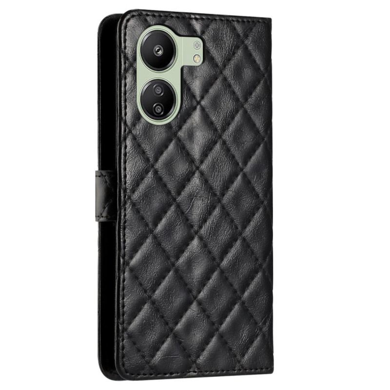 Læder Cover Poco C65 Telefon Etui Quiltet Med Rem