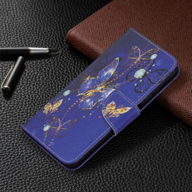 Læder Cover Poco M5s Gyldne Sommerfugle