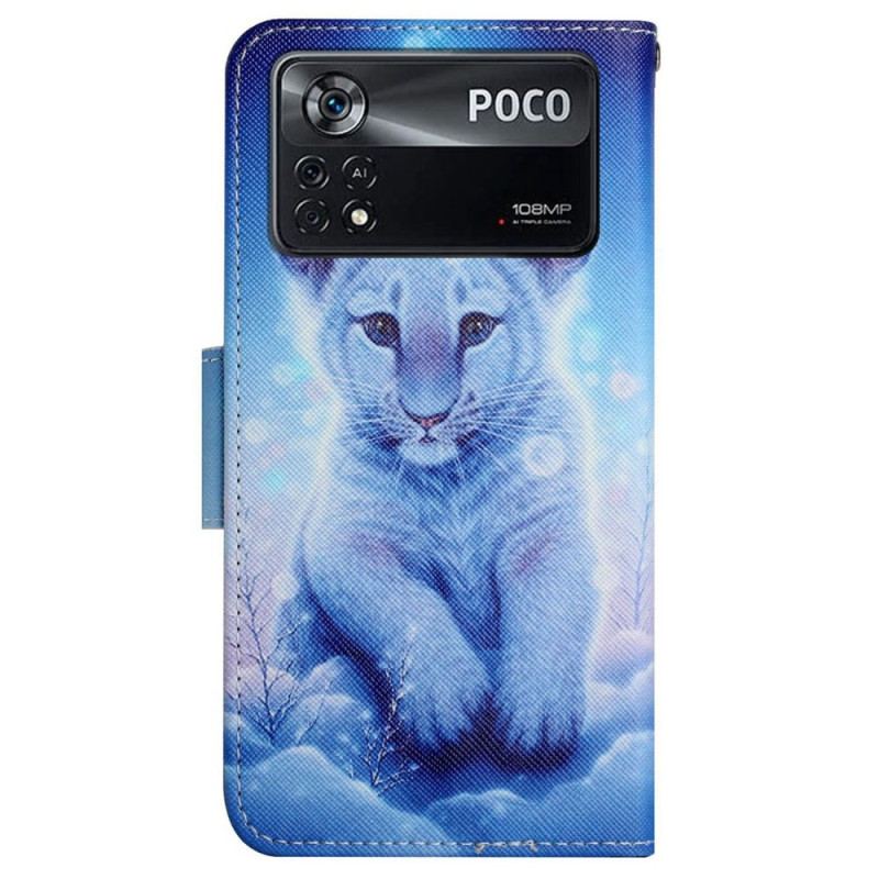 Læder Cover Poco X4 Pro 5G Med Snor Baby Tiger Med Rem