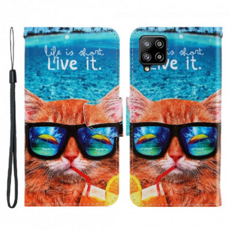 Cat Live It (Livet Er Kort) Etui Med En Strop Passer Perfekt Til Konturerne Af Samsung Galaxy A22 4G Og Fungerer Som En Meget Praktisk Hverdagspung.
