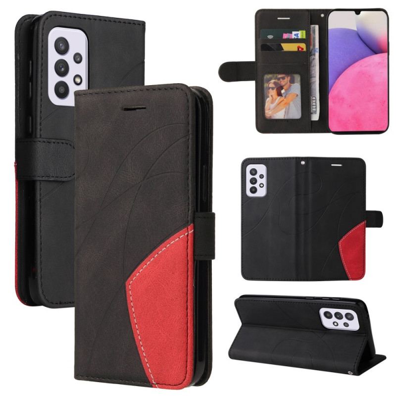 Det Tofarvede Imiterede Lædercover Er Lavet Til At Sikre Samsung Galaxy A33 5G På En Slank Og Multifunktionel Måde.