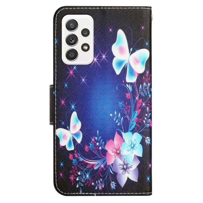 Læder Cover Samsung Galaxy A53 5G Med Snor Fe Sommerfugle Med Snor