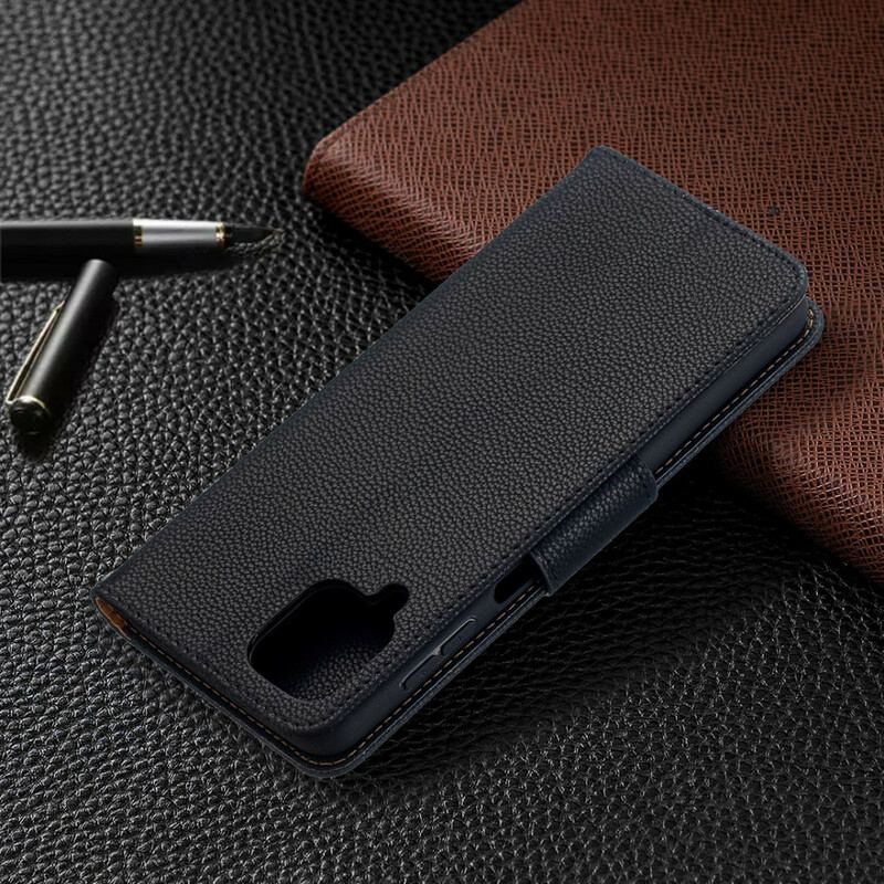 Det Skrå Klap Litchi Imiteret Læder Etui Er Den Ideelle Beskyttelse Til Din Samsung Galaxy A12 / M12.