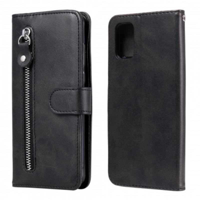 Et Smukt, Imiteret Lædercover Designet Til Samsung Galaxy S20 Fe, Med En Nyttig Møntpung Med Lynlås.