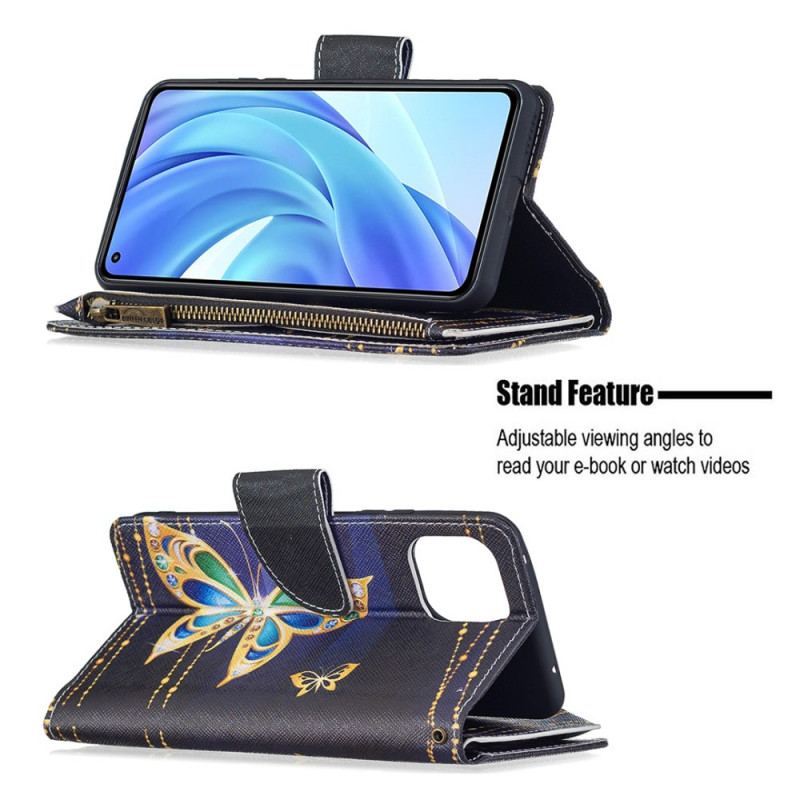 Læder Cover Xiaomi Mi 11 Lite 4G / 5G / 5G NE Gyldne Sommerfugle Med Lynlåslomme