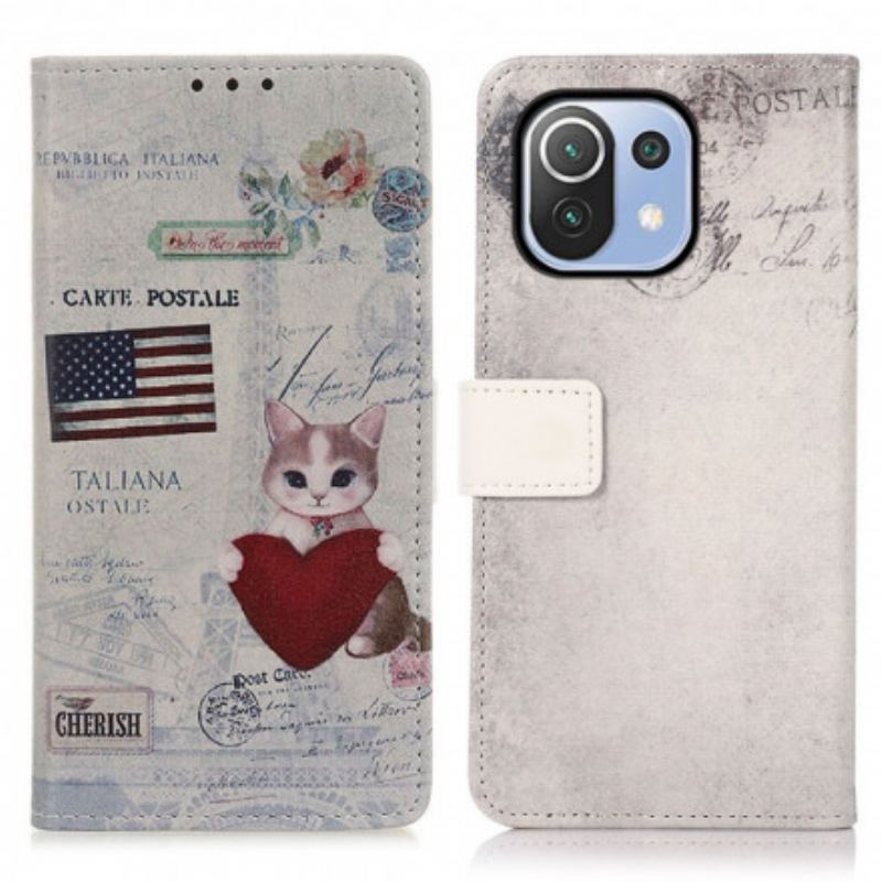 Læder Cover Xiaomi Mi 11 Lite 4G / 5G / 5G NE Rejsende Kat