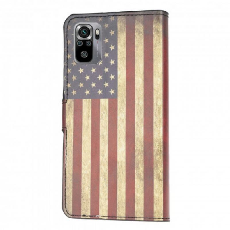 Læder Cover Xiaomi Redmi Note 10 / 10S Amerikansk Flag