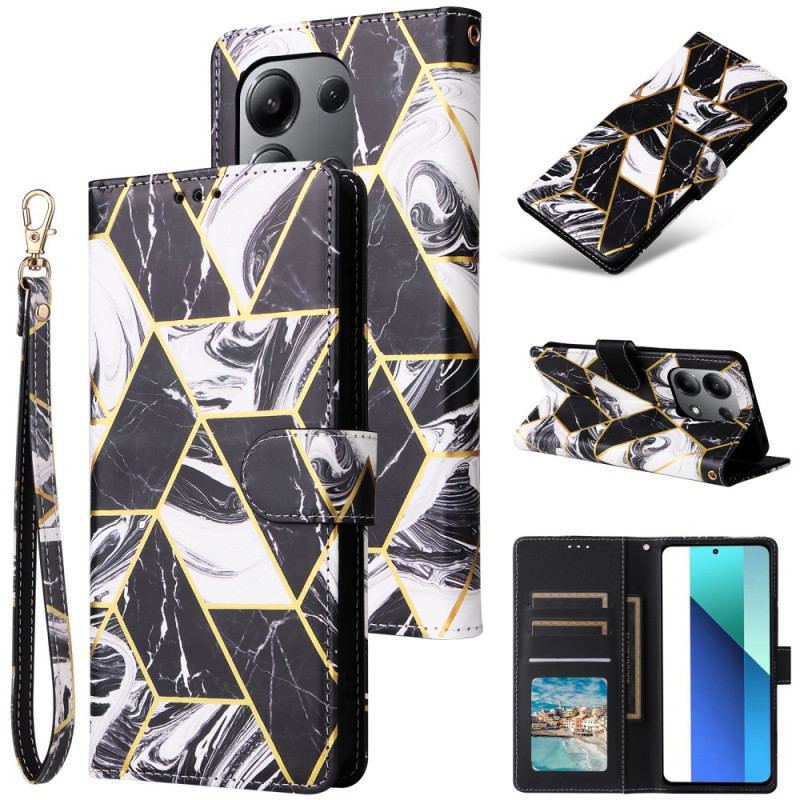 Læder Cover Xiaomi Redmi Note 13 4g Telefon Etui Marmorstil Med Rem