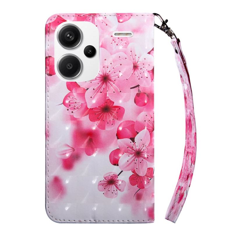 Læder Cover Xiaomi Redmi Note 13 Pro Plus 5g Telefon Etui Røde Blomster Med Rem
