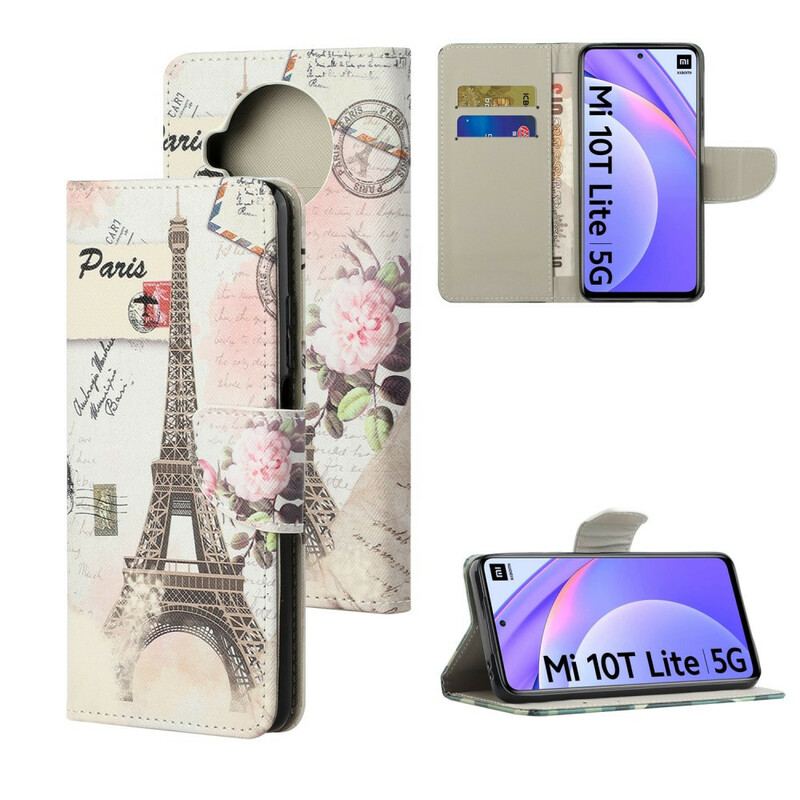Læder Cover Xiaomi Redmi Note 9 Pro 5G Retro Eiffeltårnet