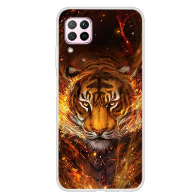 Etuiet Repræsenterer En Utrolig Og Majestætisk Ildtiger, Ideel Til Huawei P40 Lite.
