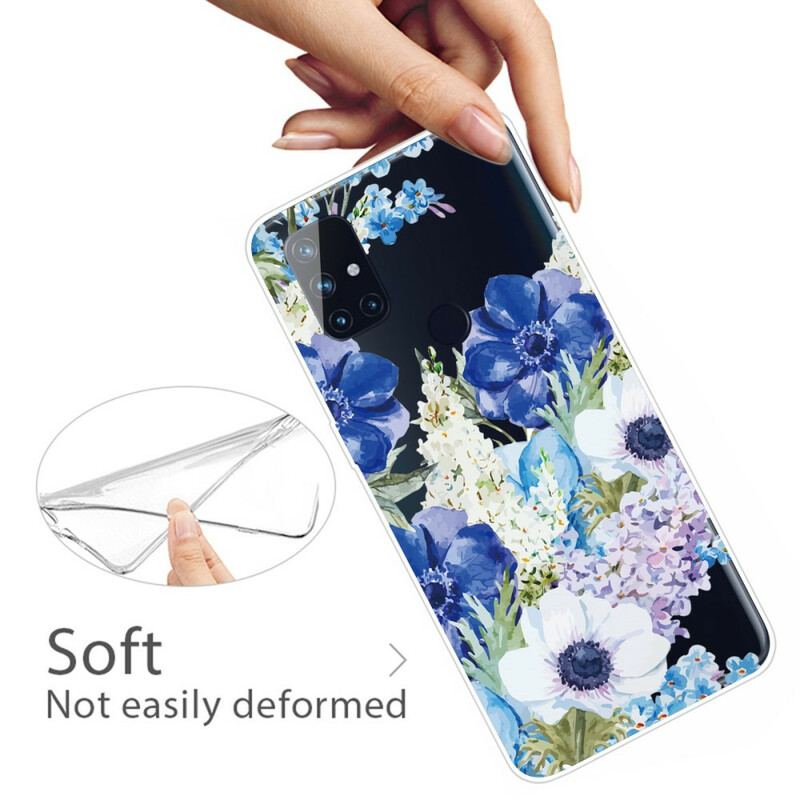 Det Gennemsigtige Watercolor Blue Flowers Etui Sikrer Optimalt Og Elegant Din Oneplus Nord N100 På Daglig Basis.