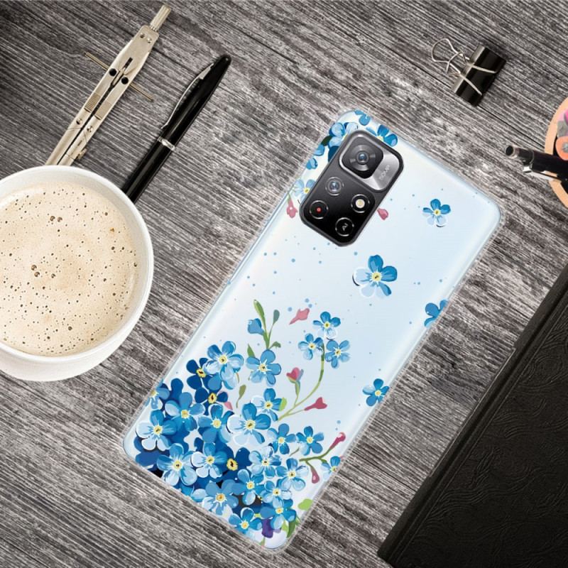 Din Poco M4 Pro 5G Er Smukt Beskyttet Med Dette Fleksible Silikonetui Bouquet Of Blue Flowers.
