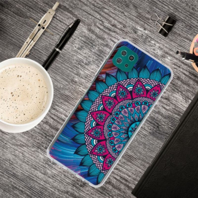 Det Farverige Mandala Etui, I Tynd Og Let Gennemsigtig Silikone, Beskytter Samsung Galaxy A22 5G Perfekt.