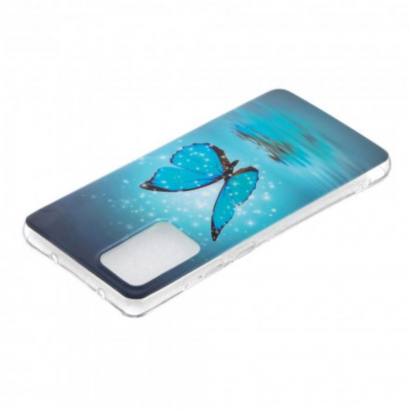 Dekorer Og Beskyt Din Samsung Galaxy A52 4G / A52 5G / A52S 5G På En Original Måde Takket Være Fluorescent Blue Butterfly Coveret!