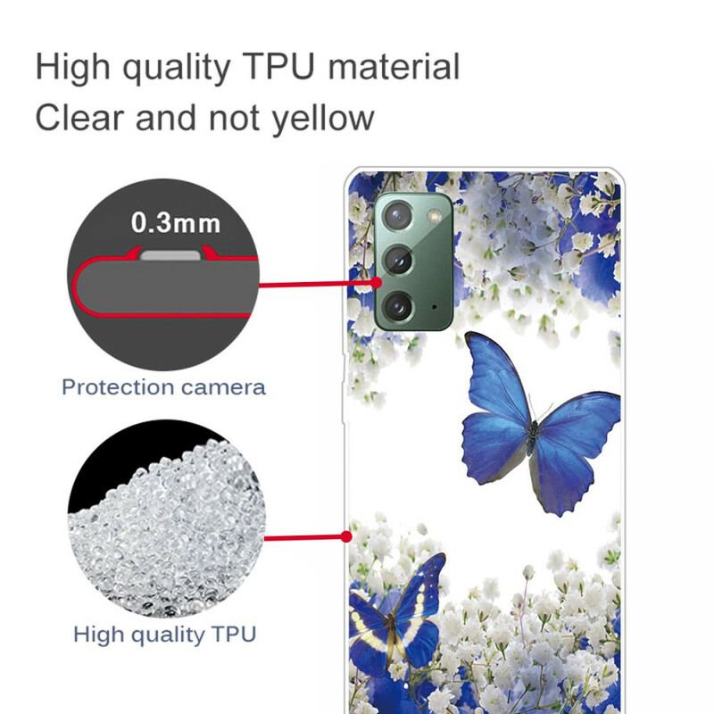 Beskyt Din Samsung Galaxy Note 20 Med Dette Gennemsigtige Butterflies-Designcover.