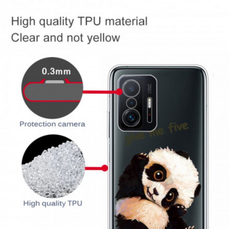 Den Gennemsigtige Panda Give Me Five-Cover Holder Xiaomi 11T / 11T Pro Fint Fast Og Giver Den Et Personligt Udseende.