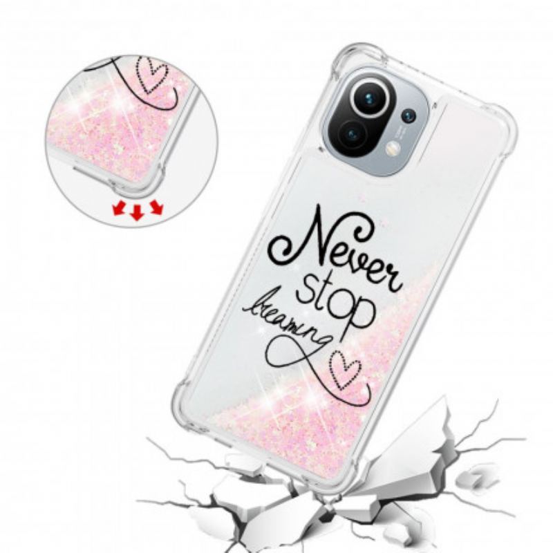 Et Glitrende Cover Og Ordene Never Stop Dreaming Til Din Xiaomi Mi 11.