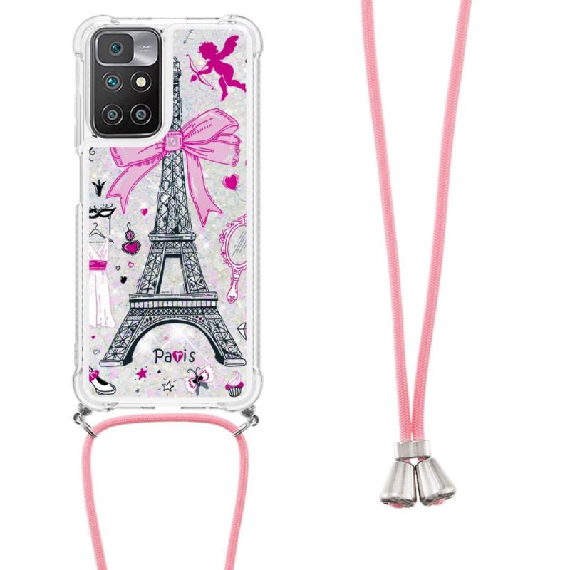 Din Xiaomi Redmi 10 Er Smukt Beskyttet Med Dette Eiffeltårnets Glittersnoretui.
