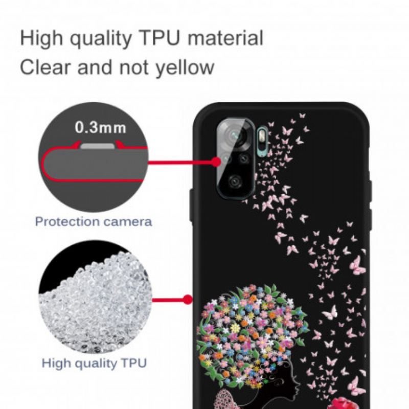 Et Cover, Dekoreret Med En Kvinde Med Et Blomstret Hoved, Som Smelter Sammen Med De Fine Kurver På Din Xiaomi Redmi Note 10/Note 10S/Poco M5S.